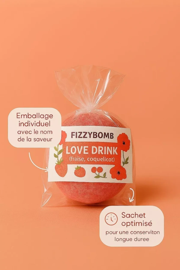 O výrobe: remeselné koktailové bomby, ručne vyrobené v dielni vo Vaucluse. Unikátne know-how, 100 % vyrobené vo Francúzsku. Koktailové bomby sú ručne vyrábané a farbené prírodnými alebo rastlinnými farbivami. Vzhľad (farba, intenzita, vzory) sa preto môže mierne líšiť od jednej výroby k druhej bez toho, aby to ovplyvnilo kvalitu alebo chuť produktu.