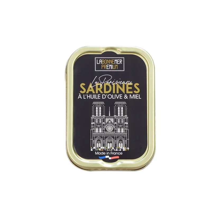 Delikátne sardinky prémiovej kvality z francúzskej remeselnej konzervárne. Sardinky sú s kvalitným olivovým olejom a medom, ktorý dáva sardinkám delikátny jemne sladký akcent. Sardinky sa dajú konzumovať studené, dajú sa použiť na výrobu pomazánky alebo ich môžete konzumovať teplé s prílohou v rámci tradičných sardinkových francúzskych jedál.