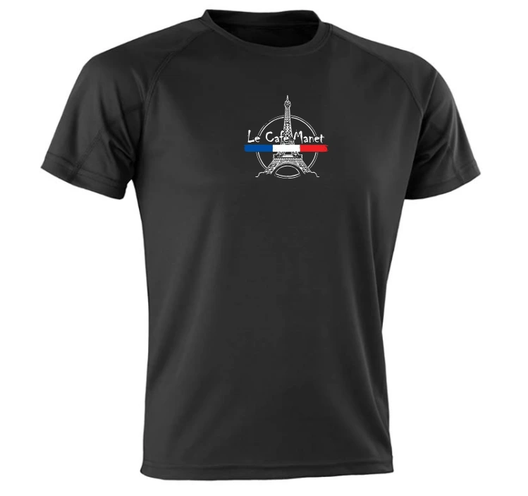 Unisex čierne športové tričko PERFORMANCE AIRCOOL s logom Eiffelovka & Le Cafe Manet