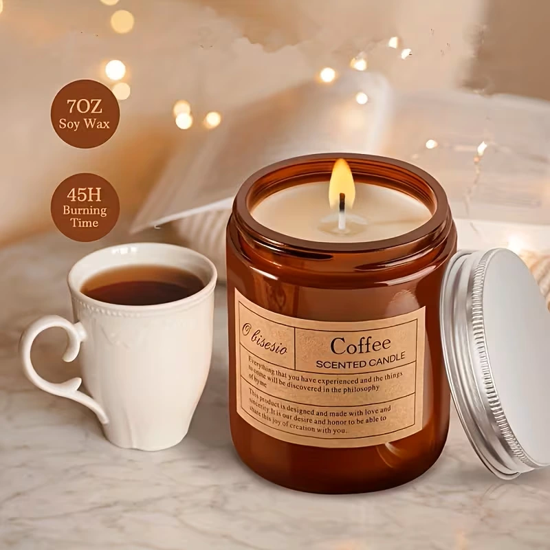 Vonná sviečka s vôňou kávy vo veľkej nádobe (200g) - na vnútorné aj vonkajšie použitie, extra dlhá doba horenia (12+ hodín). Sviečka je vyrobená z cca 200ml sójového vosku bez parafínu.